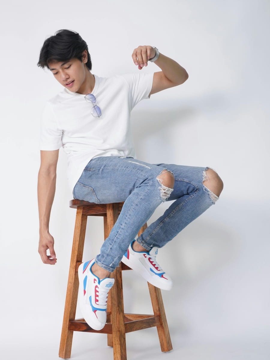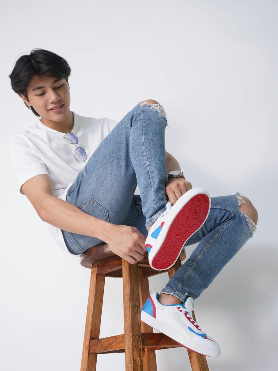 Sports trainers. Combination upper with split suede leather detailing. Textured sole.