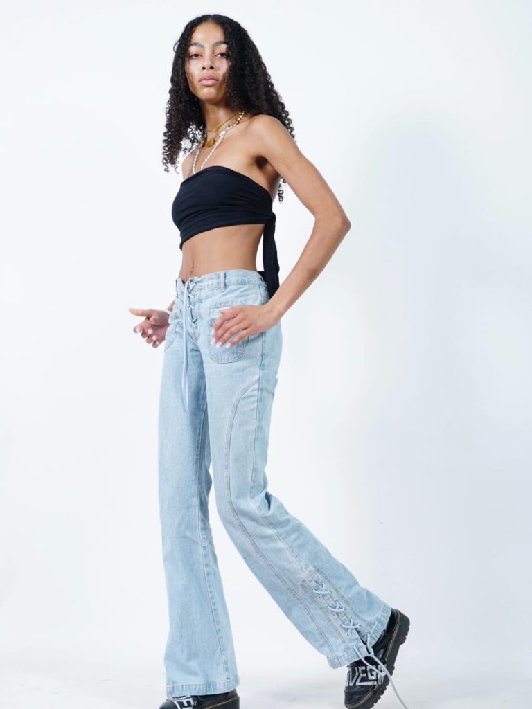 - Lace-up straight-leg jeans