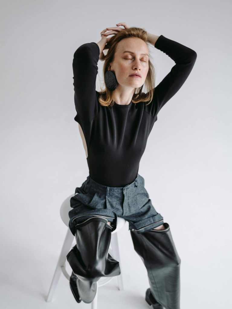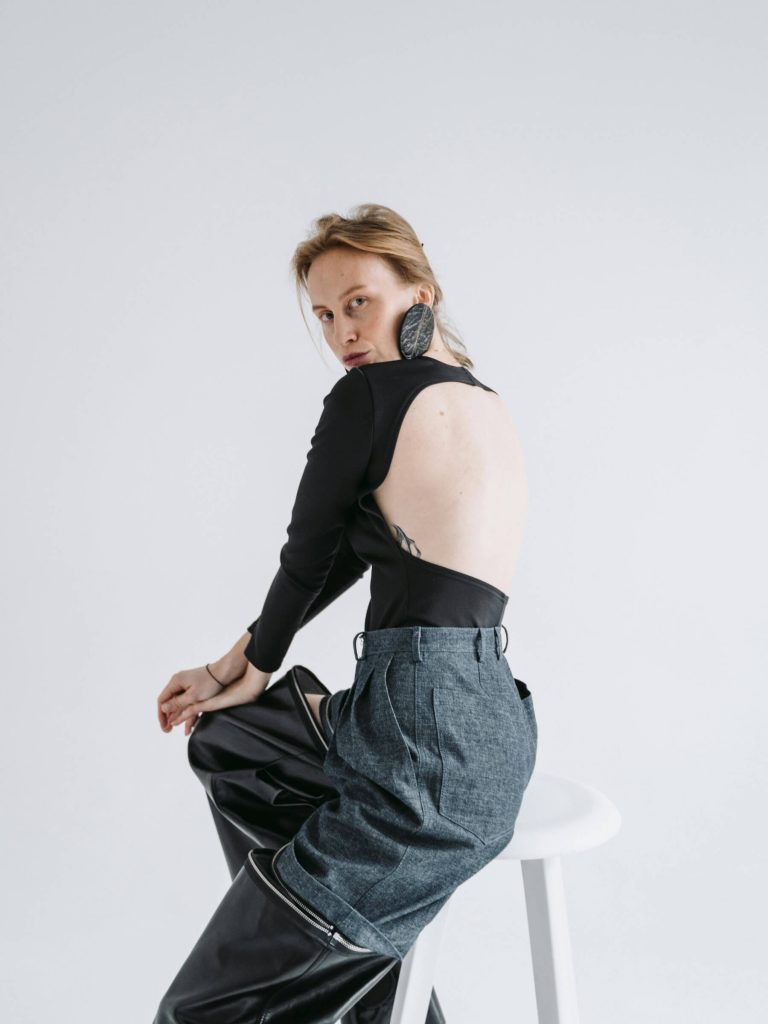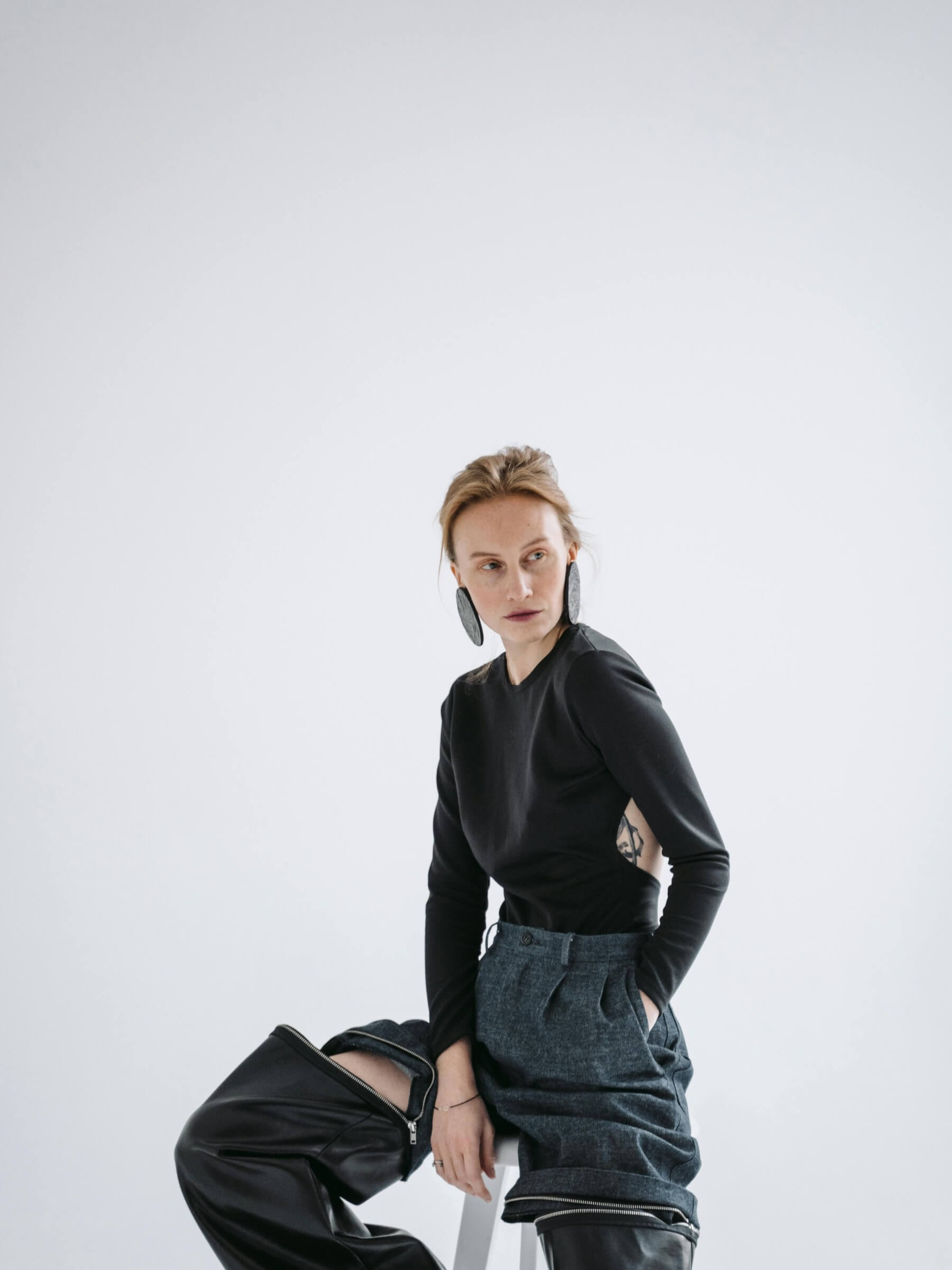 Straight-leg trousers that transform into shorts. High-waisted pants.